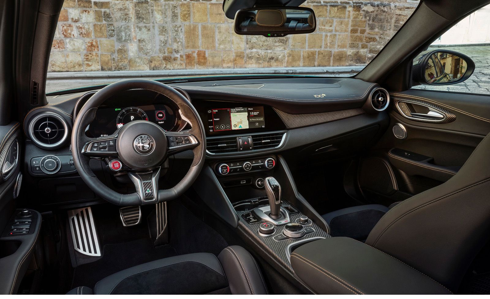 Le Stelvio et la Giulia incluent un pare-brise acoustique et un vitrage acoustique feuilleté avant de série. Ces constructions multicouches réduisent non seulement le bruit de la route, mais aident également à retenir la chaleur de l'habitacle plus efficacement que le verre simple. Le pare-brise infrarouge du Stelvio offre une protection additionnelle en réfléchissant la chaleur vers l'habitacle tout en bloquant les rayons UV nocifs.
